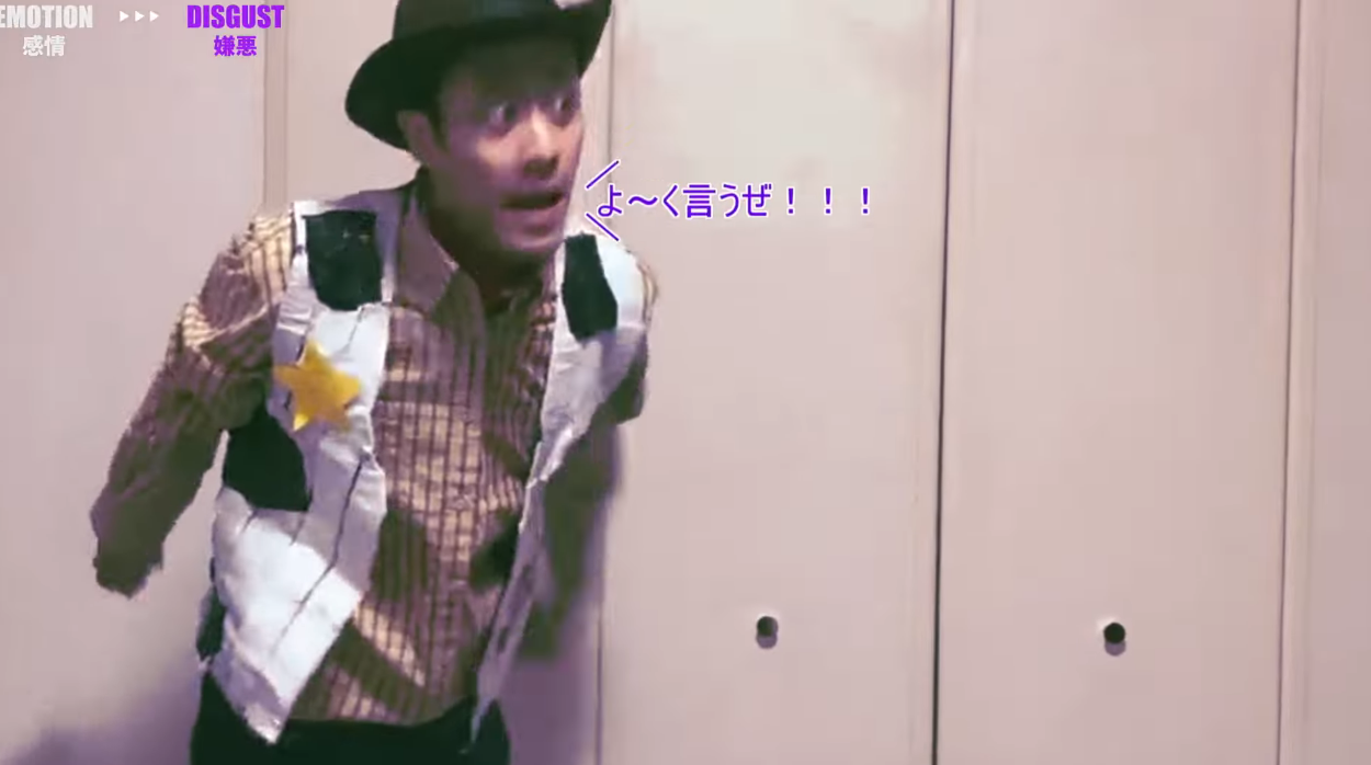 제가 선정한 MDM 작품인 <희노애락>에서도 문제를 하나 내야겠다고 생각했는데, 그 중에서 제작자 하우스텐보스의 시그니쳐 소재라고 할 수 있는 토이스토리의 “우디” 소재를 가지고 문제를 냈습니다. 원본 우디가 나오는 장면은 후반부의 “신뢰” 파트지만, 사실 중간에 토이스토리의 우디를 분장한 일본 게닌 츠루 타쿠야가 살짝 지나가는 “혐오” 파트가 있기 때문에 정답은 “혐오, 신뢰”의 2개가 정답입니다. 이 문제도 상당히 반응이 좋았는데 다른 문제들의 난이도와 참가자의 작품 수를 맞추는 과정에서 아쉽게도 누락되었습니다.