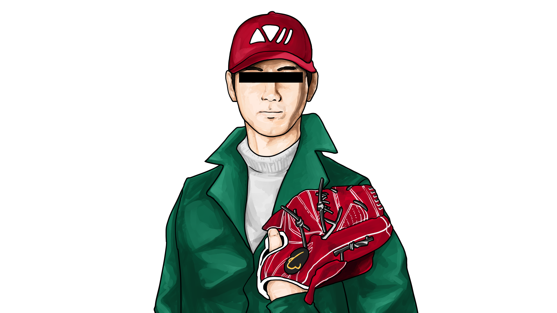 그 다음은 사계 씨를 작업했습니다. 당시 프로필 사진으로 쓰신 오타니 쇼헤이를 기반으로, 평소 좋아하시는 오모코로 채널의 ARuFa의 눈가리개, 그리고 과거 FuMuS 명의일때 사용한 프로필 사진인 <차지맨 켄!>에 등장한 불량배의 초록색 옷을 조합했습니다. 추가로 모자에는 사계 씨의 로고를, 글러브에는 주 사용 소재 중 하나인 케인 소재의 코 그림을 넣었습니다.