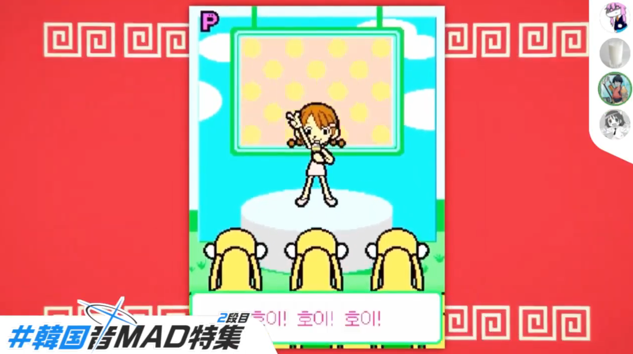 - SigSig 소리MAD처럼 처음엔 베이스와 대사가 나오다가 음조절이 하나씩 공개되면서 이게 어떤 노래인지 맞추는 퀴즈