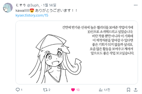 또 사각 씨가 진행한 스트리밍에서 일본의 제작자 고보 씨가 제 개인작을 추천작으로 골라주시기도 했고,