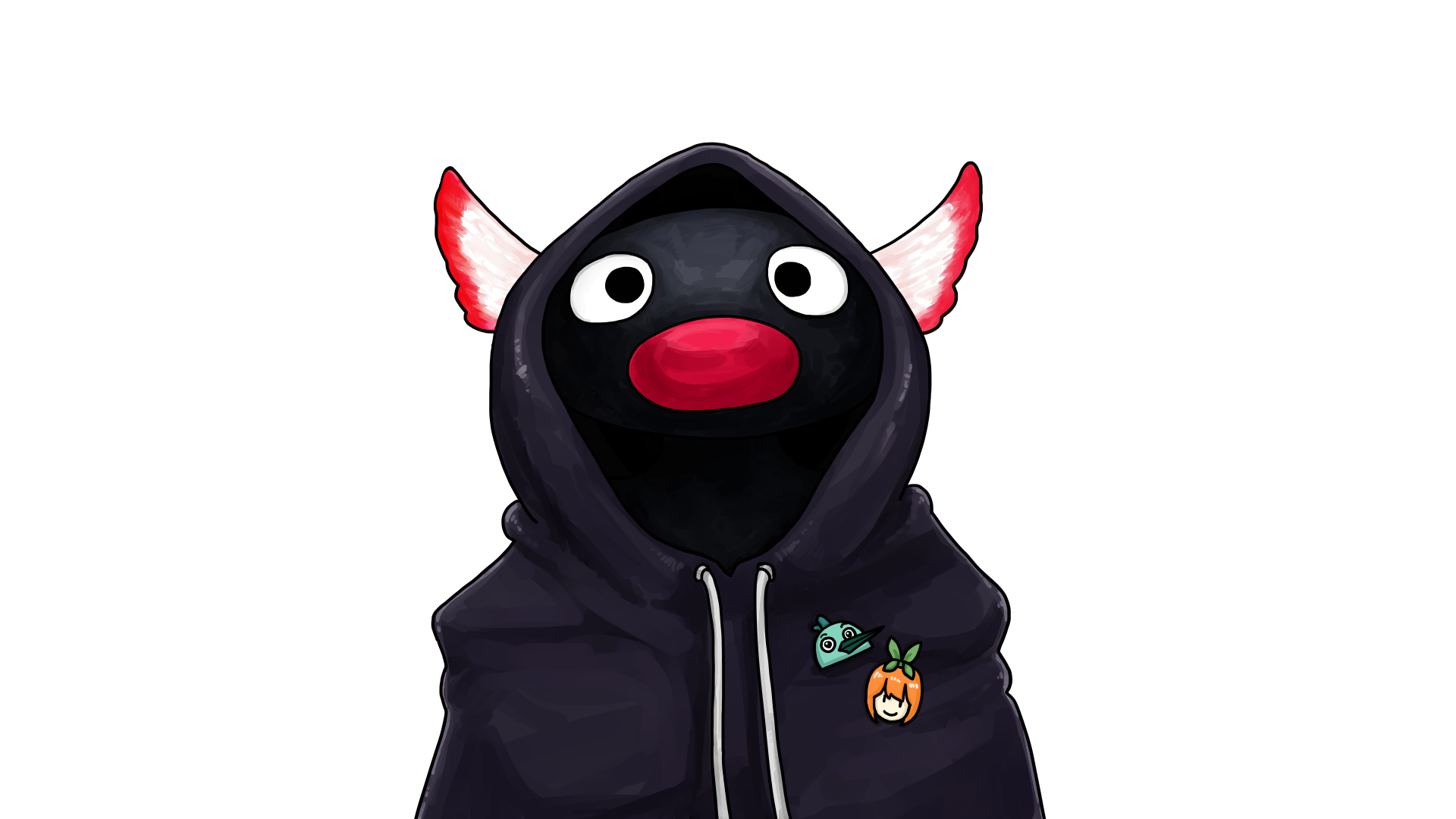 핑구 캐릭터를 쓰는 것은 확정이었기에, 거기에 오즈한 씨의 다른 프로필 사진인 후드티를 입은 토키와 합쳐서 구상했습니다. 옷에는 대표 소재인 호무새와 오즈한씨가 좋아하는 걸로 알고 있는 5등분의 신부의 요츠바 배지를 달았습니다. 개인적으로 가장 마음에 드는 CG입니다.